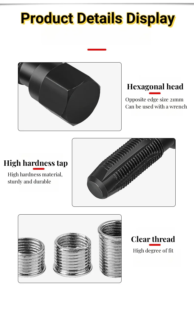 14Mm Car Cylinder Head repair. Tap Spark Plug Rethreading Helicoil Thread Repair Tool Kit Spark-Plug Hole Sleeve for Repair Parts